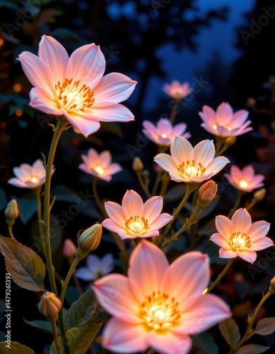 © Vi, Fototapeta premium night themed glowing flowers with bioluminescent effects set against a dark backdrop