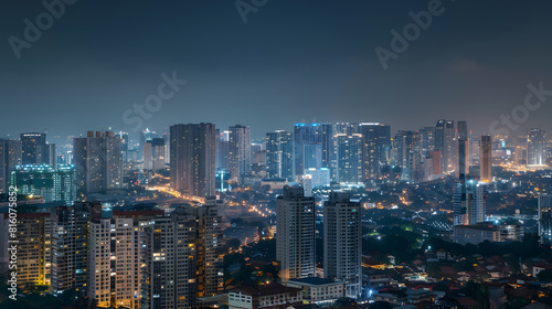 Obraz premium Night Time Cityscape Clear Sky Building City Structure Concept : Generative AI