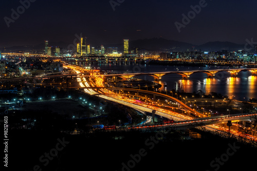 Fototapeta premium Night traffic over han river in seoul
