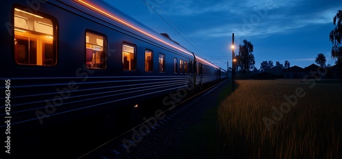 Naklejka premium Night train journey through peaceful countryside under a starlit sky