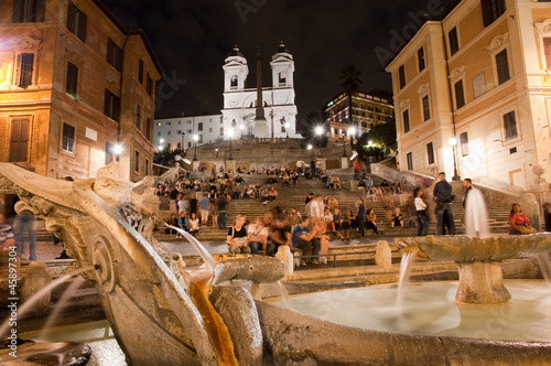 © Pablo Debat, Naklejka premium Night view at Piazza di Spagna fountain and trinita dei Monti Ro