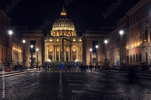 Naklejka premium Night view at St Peter's Basilica, one of the largest churches in the world...