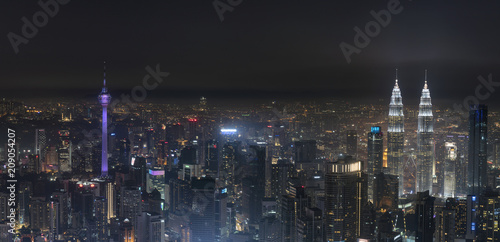 Obraz premium NIght view from high angle of Kuala Lumpur city centre