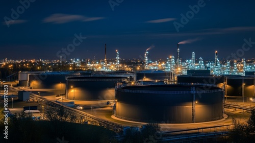 © MikhailAiman, Fototapeta premium Night View of a Chemical Plant