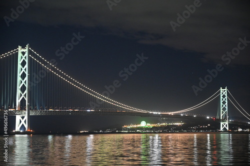 Obraz premium Night view of Akashi Kaikyo Bridge