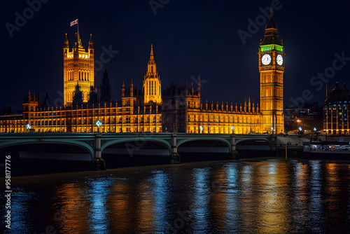 Naklejka premium Night View of Big Ben and Houses of Parliament London