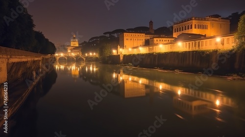 © Zie, Obraz premium Night view of Castel Sant'angelo and the Tiber