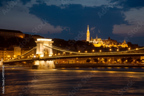 © Natalia Bratslavsky, Obraz premium Night view of Chain bridge and Buda part of Budapest