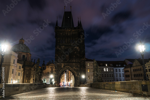 © Tomas Bazant, Fototapeta premium Night view of Charles Bridge (Karluv Most) in Prague. Czech Republic