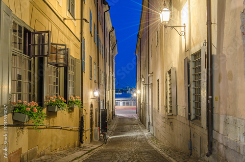 © vli86, Fototapeta premium Night view of colorful houses in the old town of Stockholm, Sweden