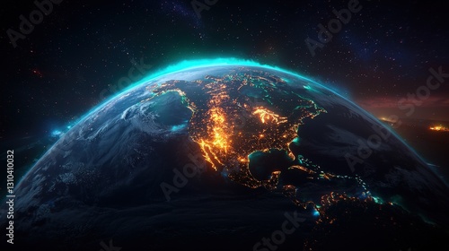 © makappa, Fototapeta premium Night view of Earth, North America illuminated.
