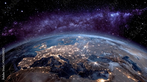 Fototapeta premium Night view of Europe from space, showing global network of connections