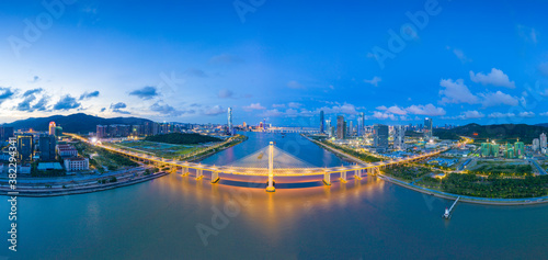 © Weiming, Naklejka premium Night view of Hengqin bridge, Zhuhai City, Guangdong Province, China