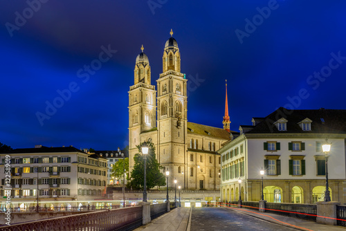 Fototapeta premium Night view of historic Zurich city center on summer, Canton of Zurich,...