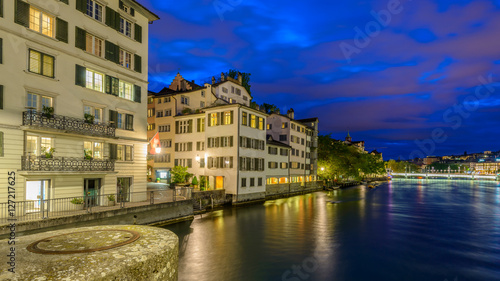 Obraz premium Night view of historic Zurich city center on summer, Canton of Zurich,...