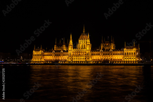 © Bob, Fototapeta premium Night view of Hungarian Parliament Building, Budapest, Hungary