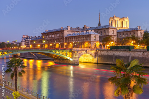 Naklejka premium Night view of Ile de la Cite and Pont Notre-Dame in Paris, France