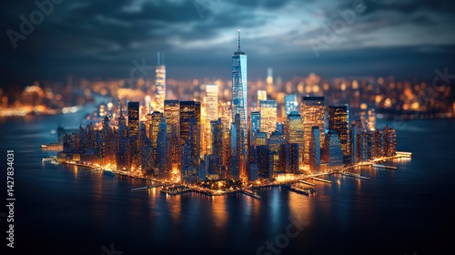 © RaneshaSky, Obraz premium Night view of illuminated city on island