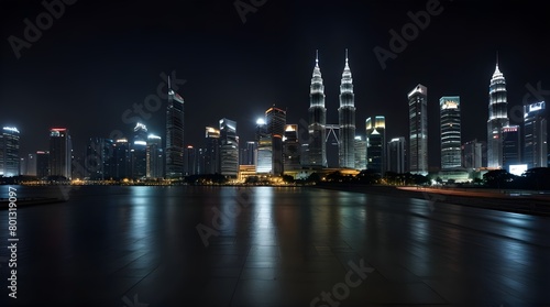 © Neelam, Obraz premium Night view of Kuala Lumpur city with empty floor.generative.ai