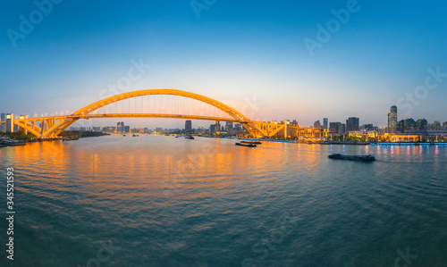 © Weiming, Naklejka premium Night view of Lupu Bridge, Huangpu River, Shanghai, China