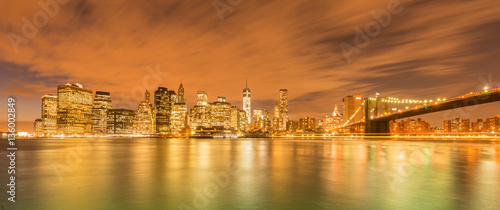 Fototapeta premium Night view of Manhattan and Brooklyn bridge