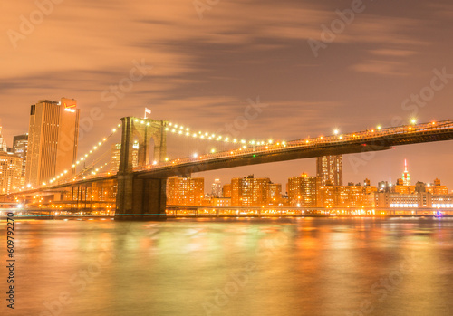 Fototapeta premium Night view of Manhattan and Brooklyn bridge