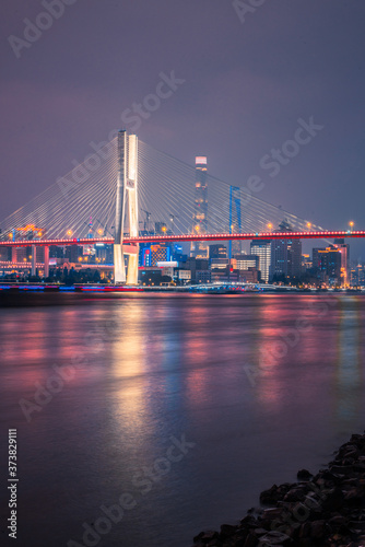 Fototapeta premium Night view of Nanpu bridge, in Shanghai, China.