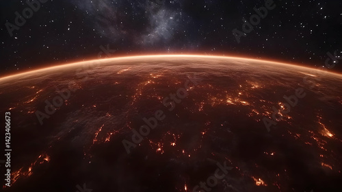 Fototapeta premium Night View of Planet Earth from Space Showing City Lights and Fire