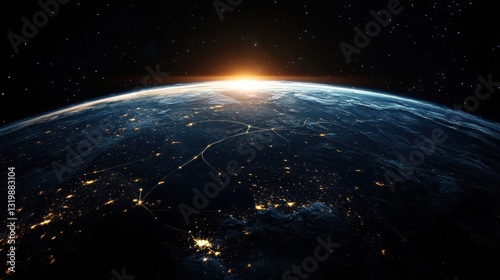 © Anat art, Obraz premium Night view of planet earth highlighting communication lines and global connections in a vibrant display of business and technology