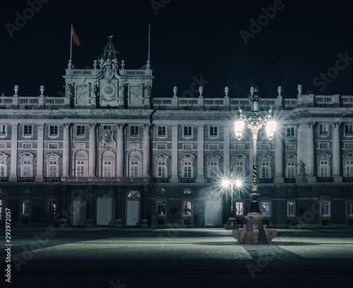Fototapeta premium Night view of Royal Palace at Madrid, Spain, official residence of the...