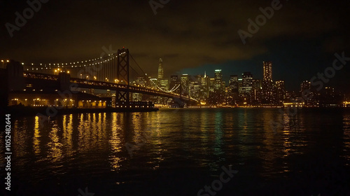 Fototapeta premium night view of san francisco skyline with golden gate bridge reflections in water