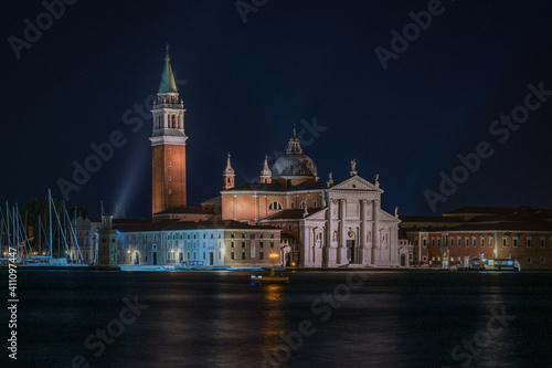 Fototapeta premium Night view of San Giorgio Maggiore church seen from St. Mark's Square,...