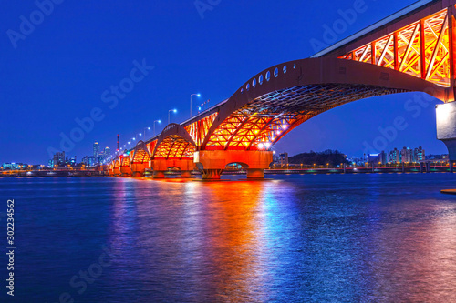 © kampon, Naklejka premium Night View of Seongsandaegyo Bridge Seoul South Korea