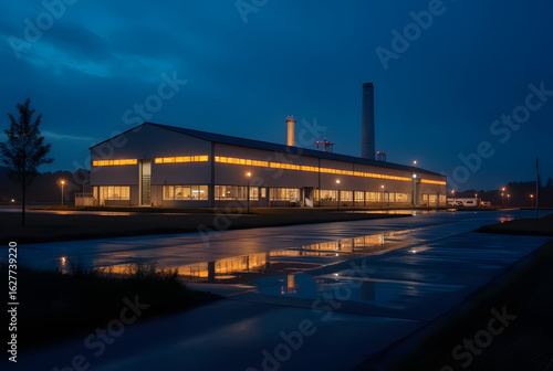 © Faisal, Naklejka premium Night View of Solar-Powered Factory