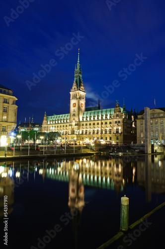 © Hirotaka Ihara, Fototapeta premium Night view of the City hall of Hamburg