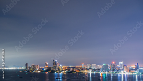 Fototapeta premium Night view of the city of Pattaya at night with glittering lights impresses tourists.