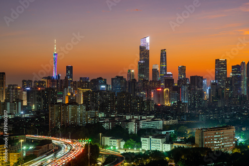 © AdolescentChat, Fototapeta premium Night view of the city skyline of Zhujiang New Town CBD, Guangzhou, China