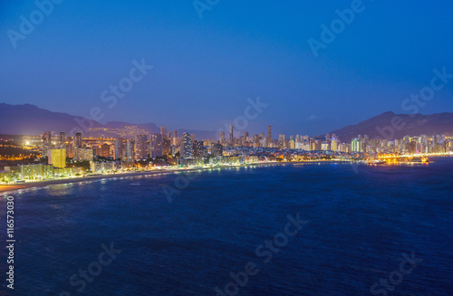 © bodiaphoto, Obraz premium Night view of the coastline in Benidorm with city lights