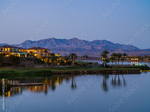 © Kit Leong, Fototapeta premium Night view of the lake landscape of Lake Las Vegas