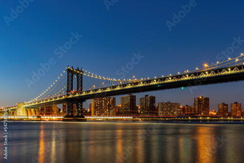 © Kit Leong, Fototapeta premium Night view of the Manhattan Bridge and New York City skyline