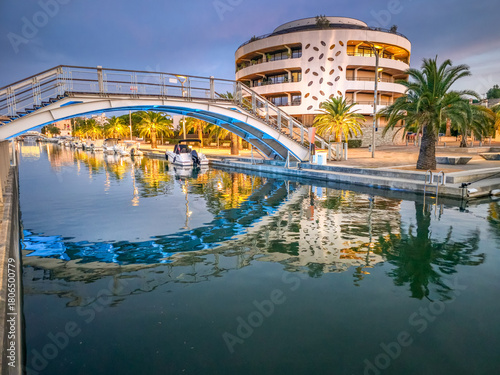 © TravelWorld, Naklejka premium Night view of the port in Frejus, South of France