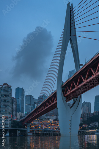 © Zimu, Fototapeta premium Night view of the Qiansimen bridge and the skyline in Chongqing, China.