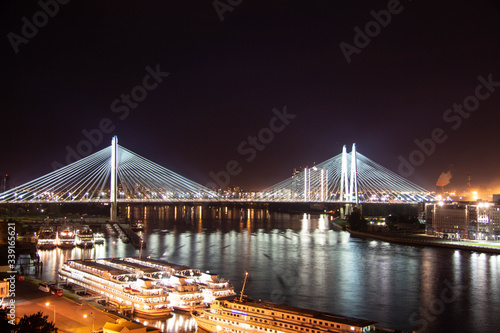 © Дмитрий Солодянкин, Naklejka premium night view of the river and the bridge