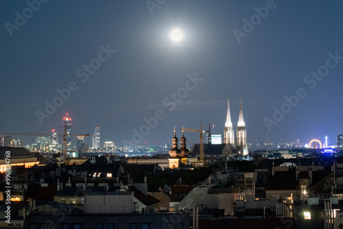 © Emya Photography, Fototapeta premium Night view of Vienna's skyline