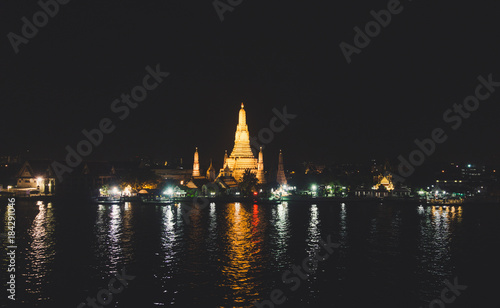 Obraz premium Night View of WAT ARUN (TEMPLE OF DAWN) and Chao Phraya River, Bangkok,...