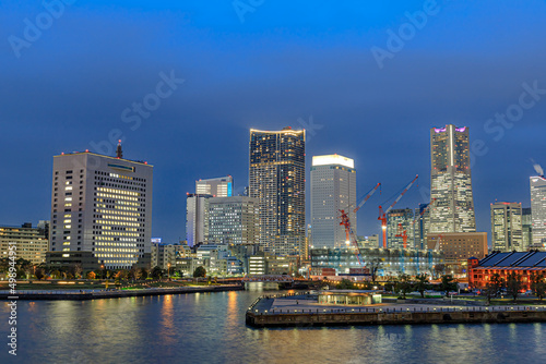 Fototapeta premium 大さん橋ターミナルから見た横浜の夜景 神奈川県横浜市 Night view of Yokohama seen from Osanbashi Terminal. Kanagawa-ken Yokohama city.