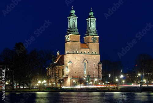 © Mikhail Markovskiy, Naklejka premium Night view on Cloisters Church (Klosters kyrka) in Eskilstuna
