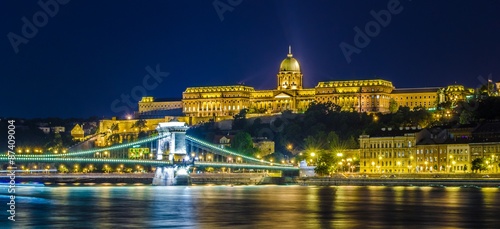 Fototapeta premium Night view over illuminated complex of buda castle in budapest taken from...