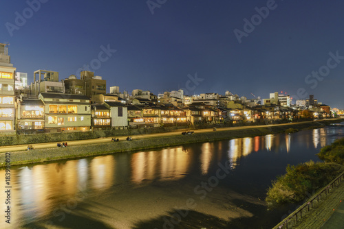 Obraz premium Night view with modern building around Kamo River