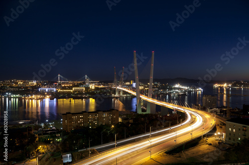 © vesta48, Fototapeta premium Night Vladivostok. Golden bridge